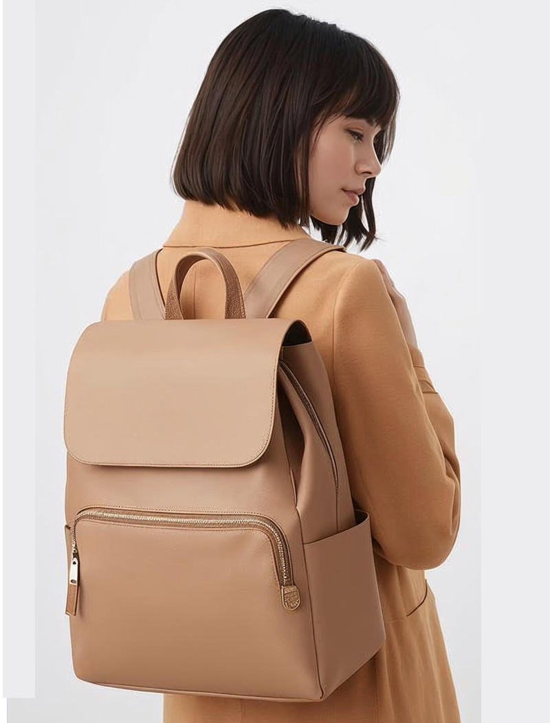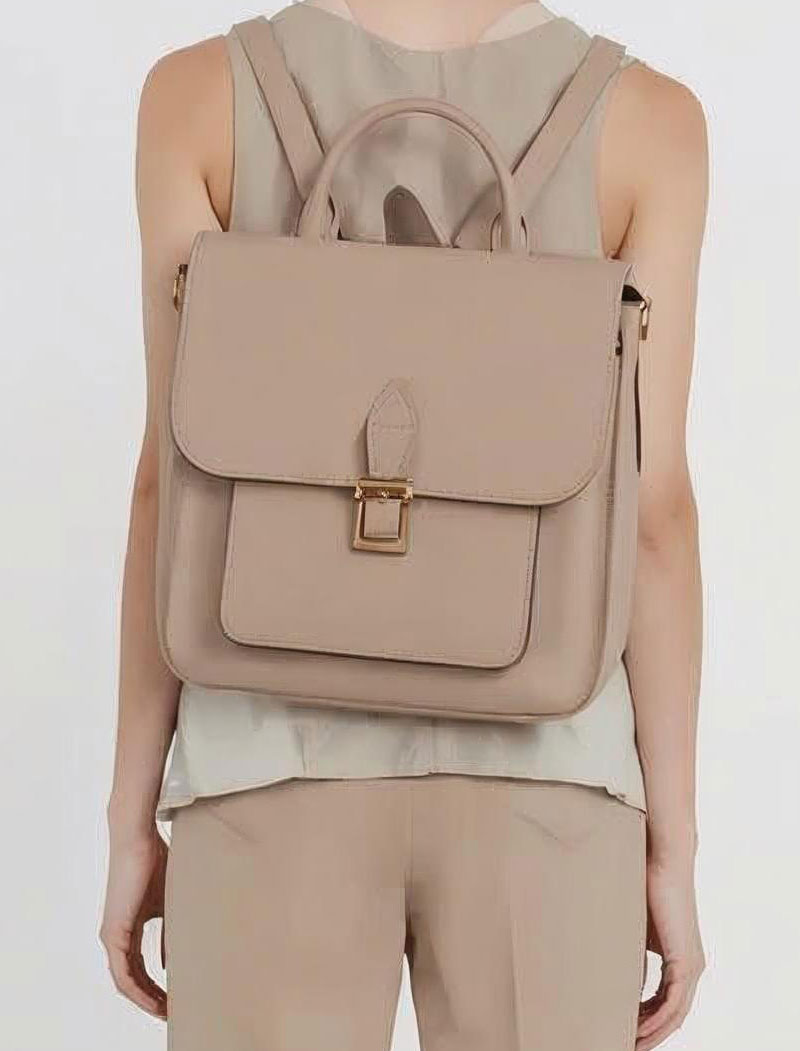 Beige Modern Leather Backpack for Women
